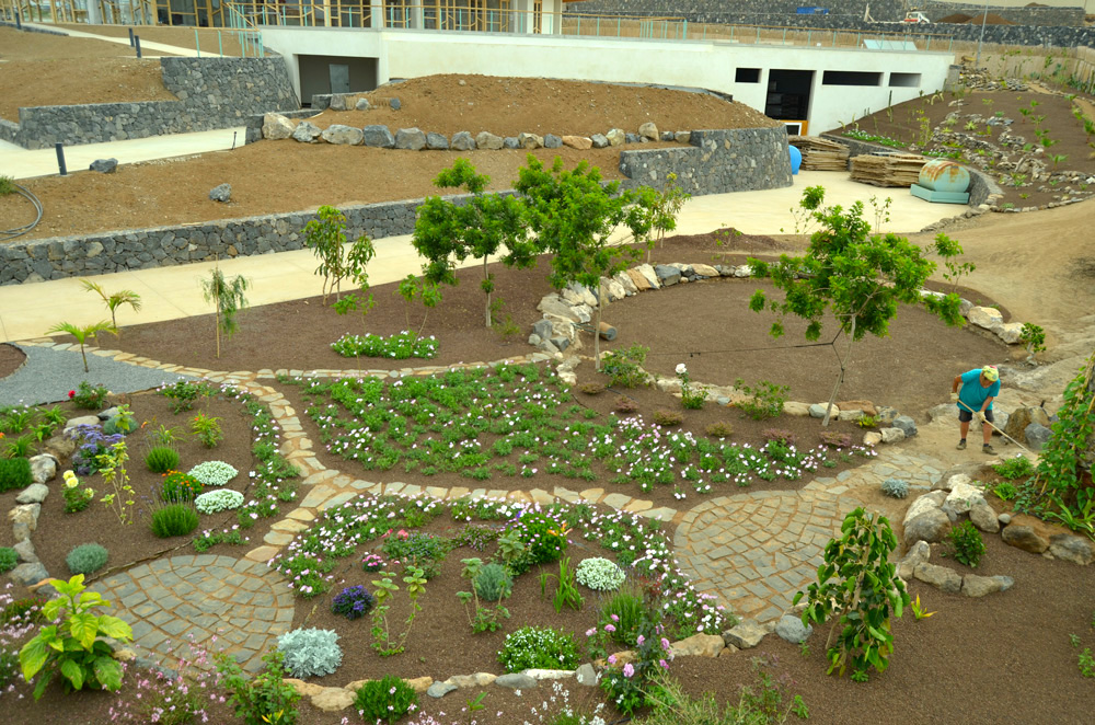 To complete the garden there is a third level, a natural amphitheatre formed by a circle of rocks where people can do activities together, collective practices, dance, have a barbecue and so on.