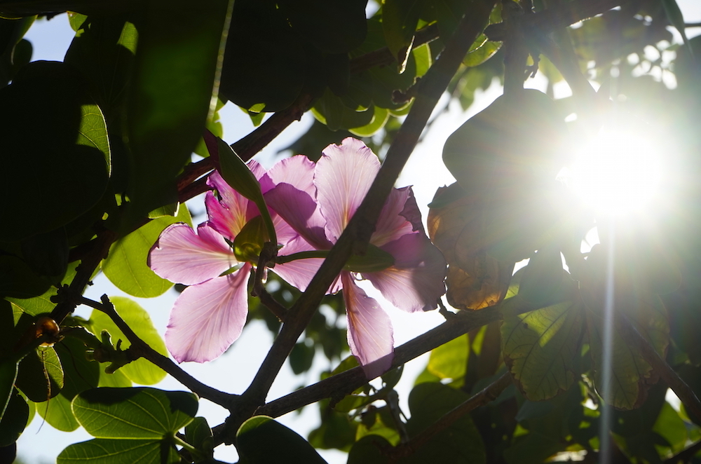 The flowers of the bauhinia or orchid tree have a fragrance that lasts throughout the night. It is a popular ornamental tree with masses of large, sweetly scented purple, pink, magenta, white or lavender blossoms that resemble orchids. This fast-growing tree provides welcome shade during hot summers and the blooms also attract a variety of hummingbirds.